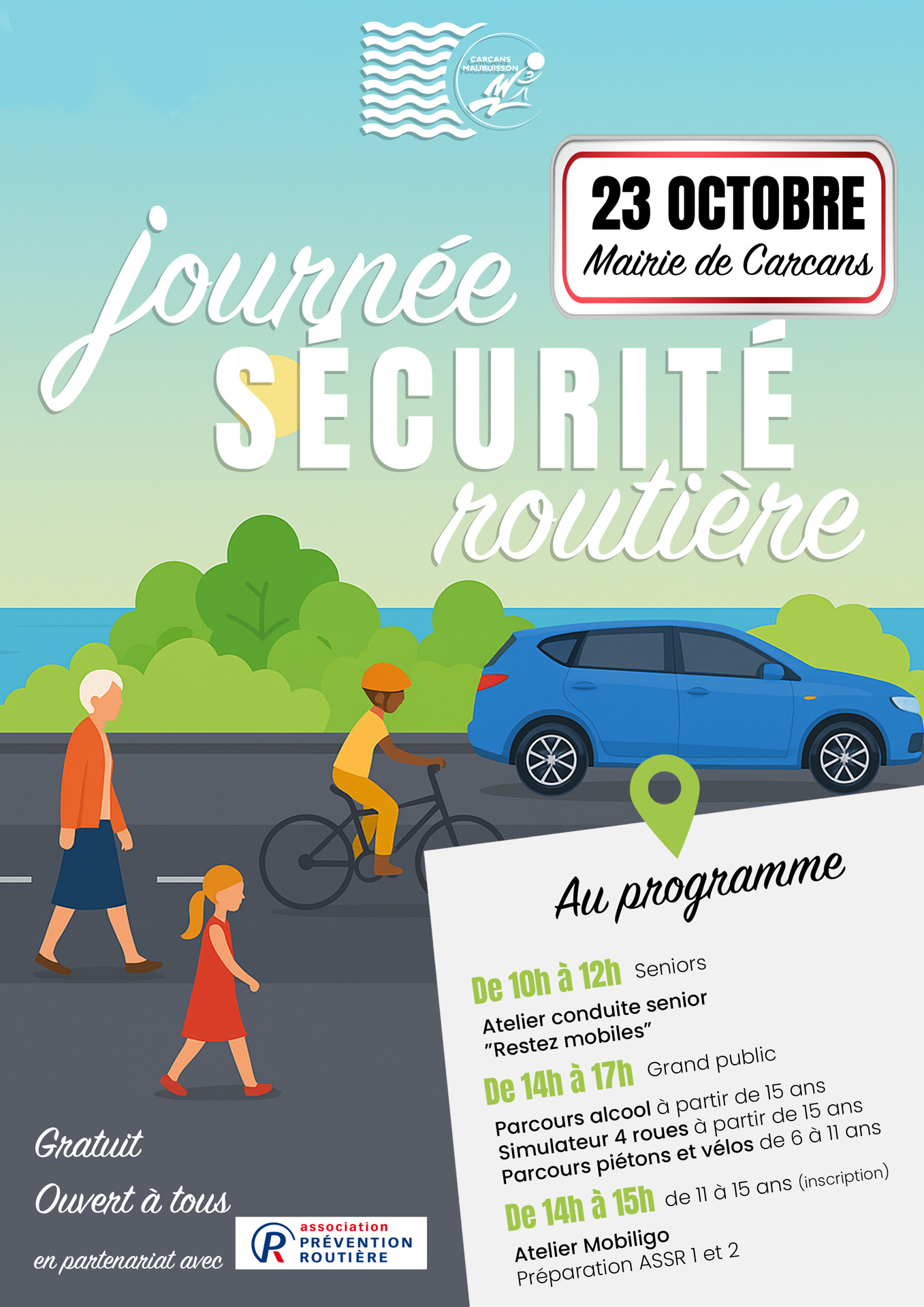 La Mairie de Carcans, en partenariat avec l’Association de Prévention Routière, organise une grande journée de sensibilisation à la sécurité routière le jeudi 23 octobre 2025.