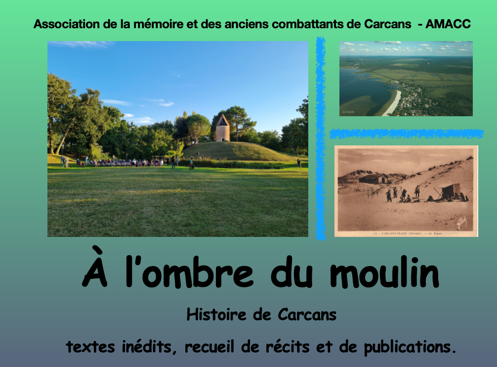 L’association de la Mémoire et des Anciens Combattants de Carcans (AMACC) vous invite à venir assister à la présentation d’un recueil de récits, de publications et de textes inédits illustré par les archives familiales des habitants du village, le jeudi 5 février à 11h30 à Carcans Bourg, salle de la Bugade.